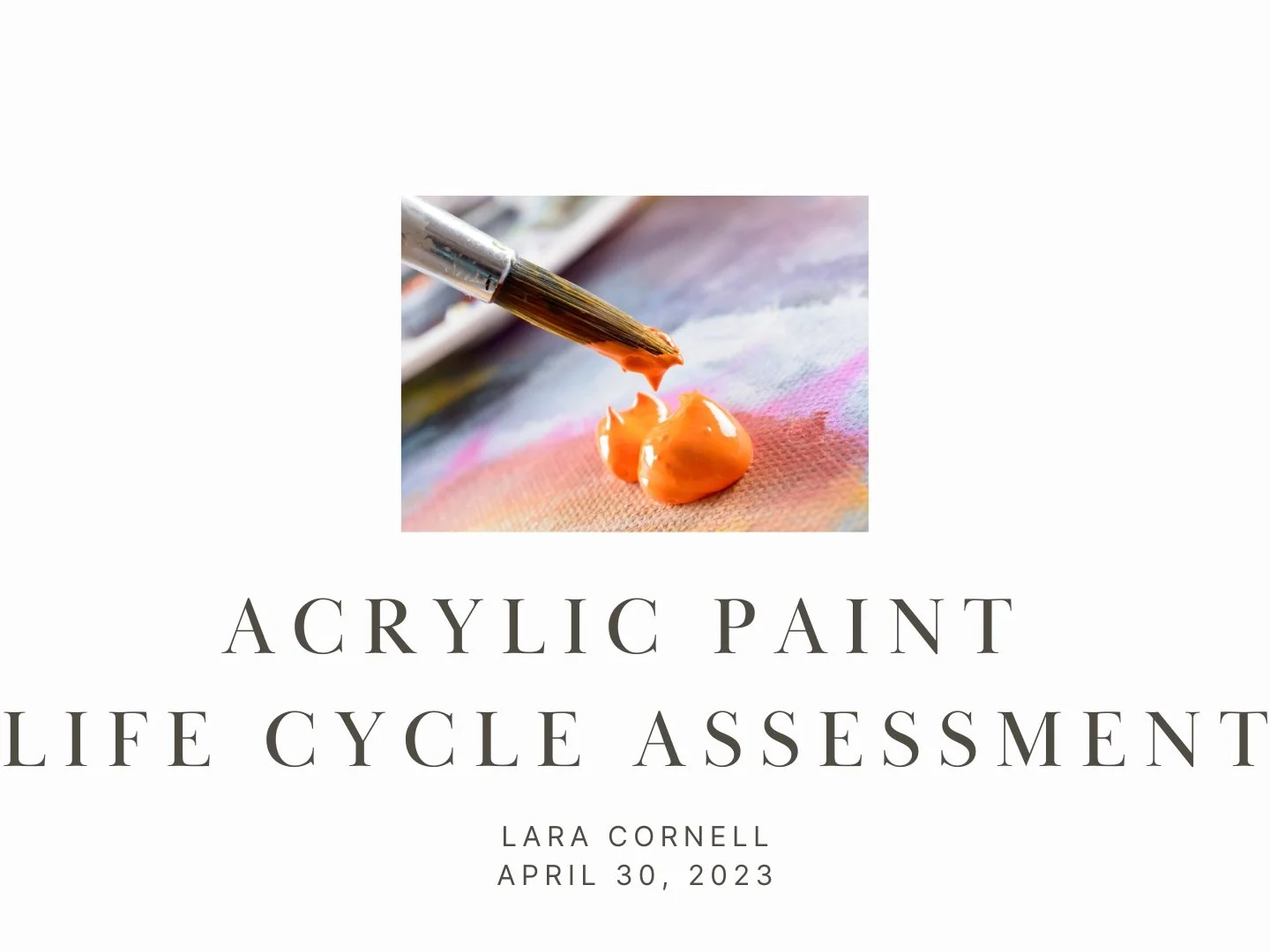 This graduate course on sustainable design informed a comprehensive life cycle assessment of acrylic paint, examining its environmental, social, and health impacts—from raw material extraction to disposal—while addressing issues like petroleum-based products, heavy metals, microplastic pollution, and recycling challenges, ultimately questioning the sustainability claims of acrylic paints.
